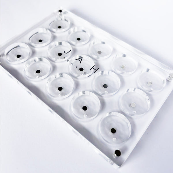 These magnetic palettes fit most brands such as MAC & Charlotte Tilbury. They also magnetically stack for convenience. The clear acrylic design allows you to see at a glance what you have inside, saving you time and stress!